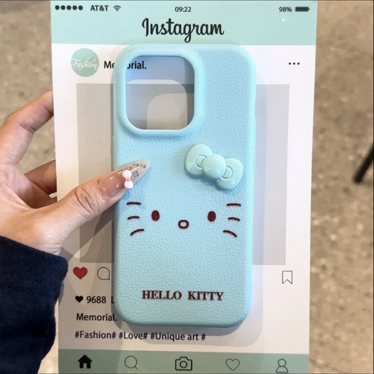 Sweet Hello Kitty Face Bowknot Cartoon Grain Leather Soft Phone Case